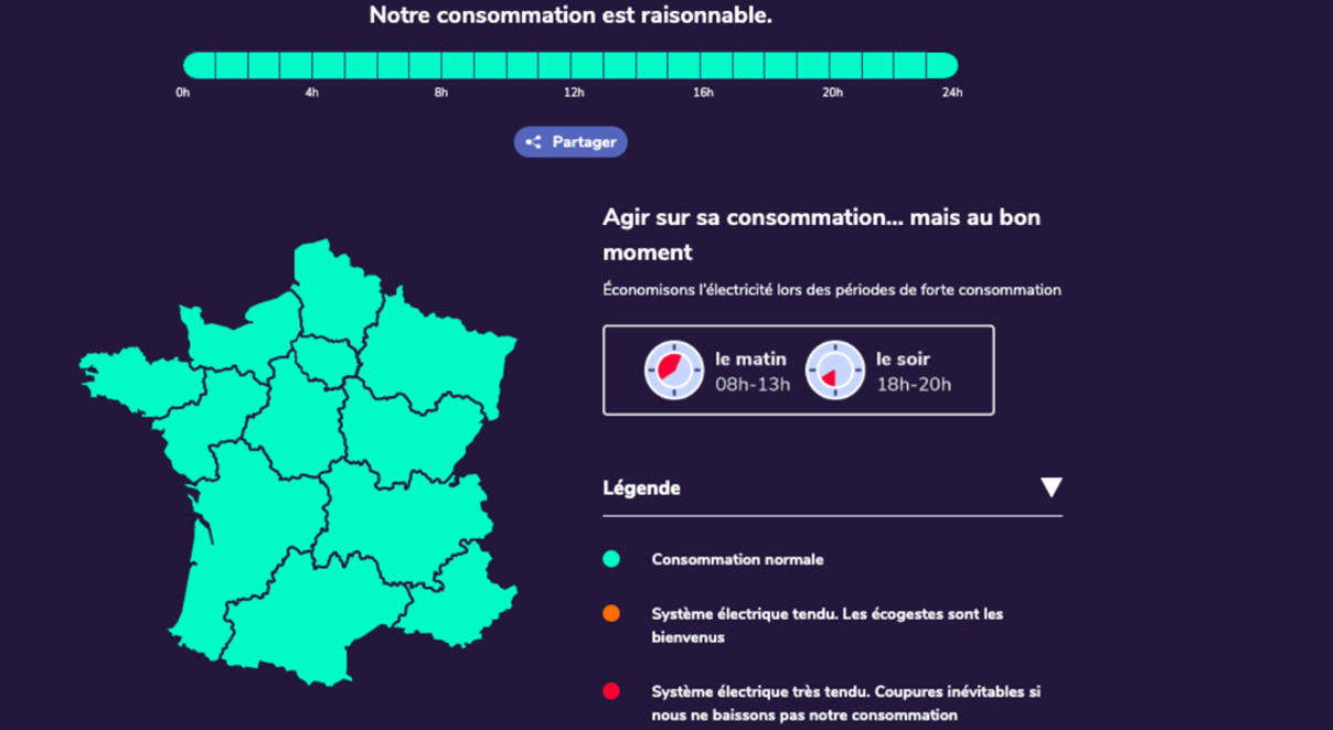 France's main television stations are now including energy forecasts as part of their daily weather reports. The data is produced by Ecowatt and uses traffic light colours to indicate the current state of the grid. Green means the grid is normal with no problems, orange is strained and red very strained with a risk of power cuts. The predictions are based on predicted temperatures, technical issues, wind and sun available for renewables and levels of electricity imports. Although consumers could previously opt to receive this information by email, having it as part of televised weather reports normalises this information and increases awareness about energy use. So, if the report is orange, you might consider turning down the heating or postponing a load of laundry in the same way as you could bring an umbrella with you if the weather indicated there was a chance of rain.