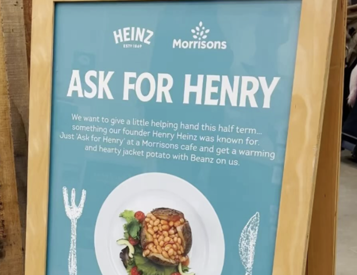 In the UK, Heinz has partnered with supermarket chain Morrisons to help feed those that are feeling the increase cost of living. Anyone can drop in for a free meal of baked potatoes filled with Heinz beans in tomato sauce. What is interesting is that in order to avoid the stigma of asking for a free meal, those in need just need to ask for ‘Henry’ at the café counter and with this secret word will be delivered their free meal. I wouldn't say it is so secret since there are posters around the restaurant explaining the programme, but this would be an interesting initiative to start on campus with students in need (not necessarily with Heinz).