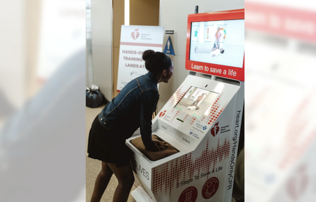 Walking through Los Angeles International Airport last week I noticed a series of CPR training kiosks spread out across the airport. The American Heart Association put in place these hands on training kiosks to help train passengers in CPR. It only takes five minutes and was really effective (and popular! It took me a while to find a free kiosk). Interestingly, most of those doing the training that I noticed were all in their 20s. I loved this approach because it gets straight to the point. Rather than simply encouraging individuals to get CPR trained, it promotes CPR training and gives you basic training in the same step, and in a place where a lot of people pass and a lot of people have time to spare.