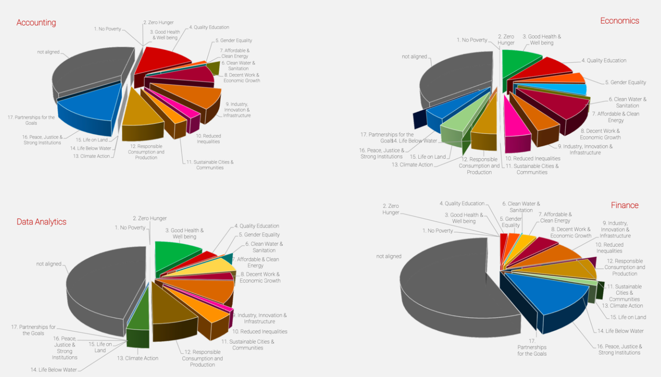 La Trobe Business School in Australia maps its research as it’s aligned with the Sustainable Development Goals. It provides this information not just for all of their research, but divided by department. The school’s newly endorsed strategy will explicitly address the SDGs and, importantly, formalise their importance to the School. To support the new strategy, the School has also established a SDG Working Party, with representation from across all School disciplines and from the School executive.